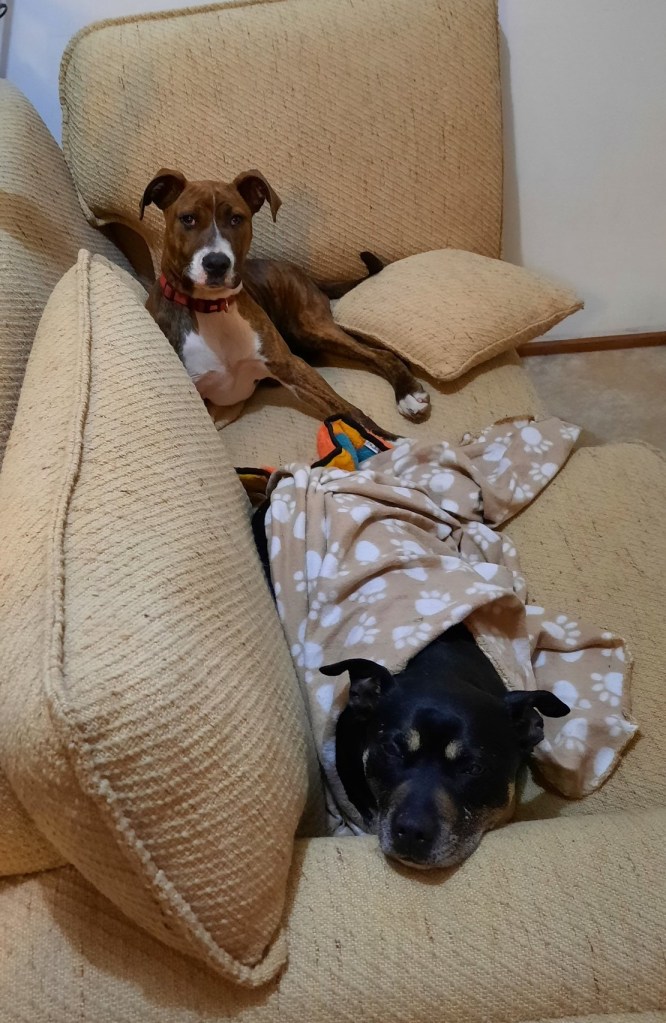 They especially like traveling with Dr V, running around in the rain and playing tug of war.